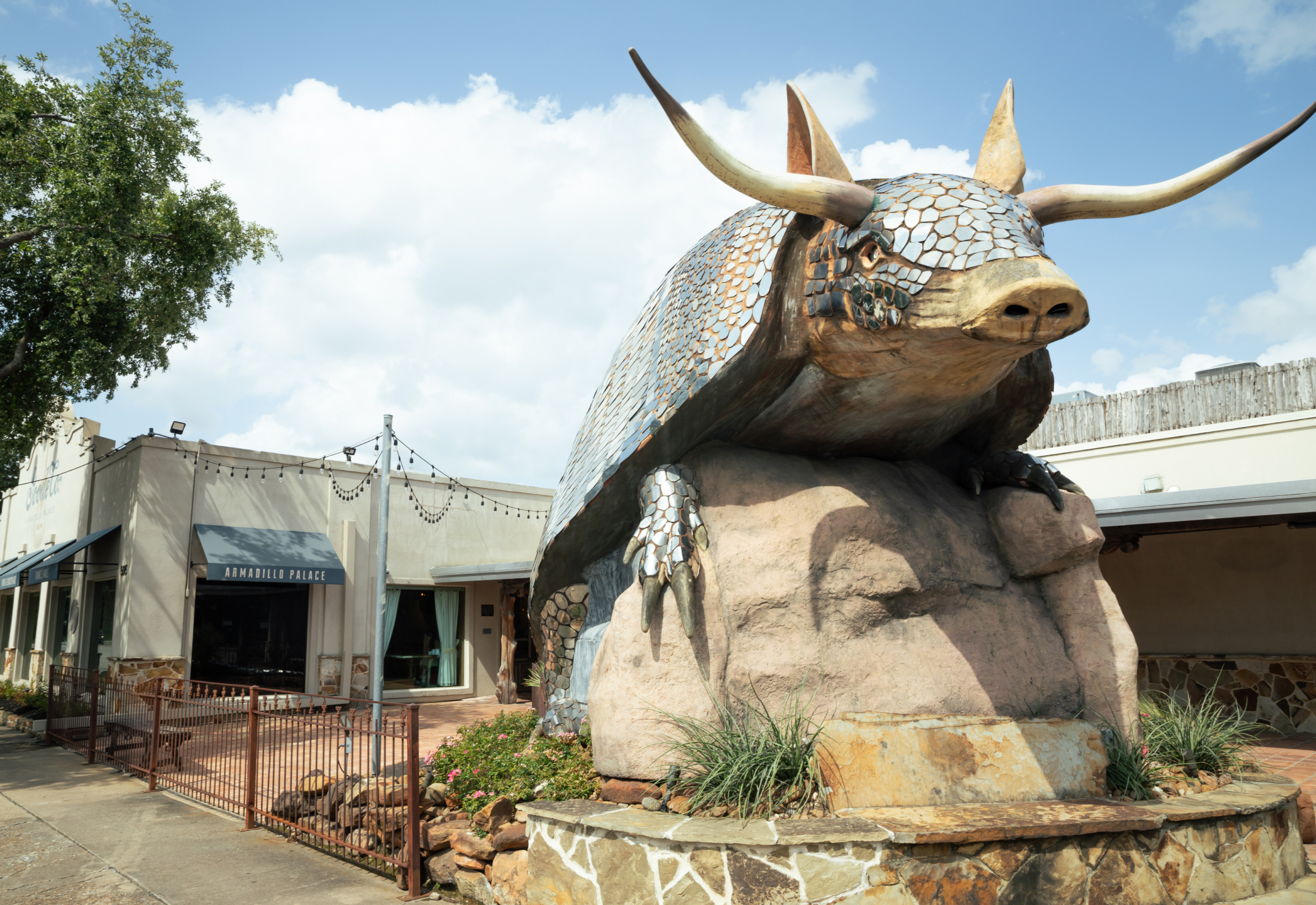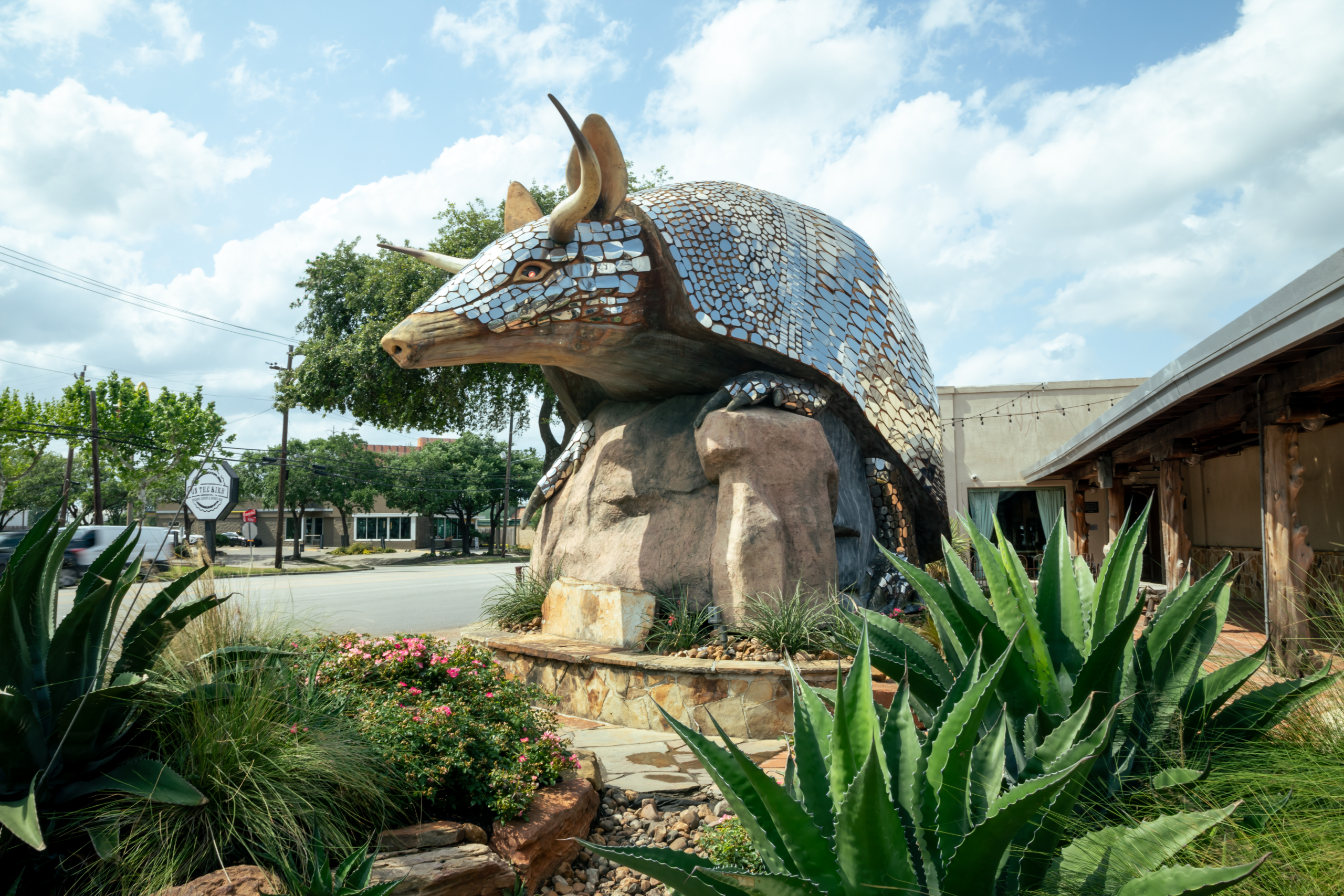 When I first dreamt up this idea, there was really only one object that I considered starting with and, ironically enough it’s not hanging on a wall. If you drive down Kirby past Goode Company Barbeque, look out your right- or left-hand window and you’ll see the object that has attracted the attention of countless Houstonians and visitors, been the backdrop for plenty of proposals, and even made its way onto Mick Jagger’s social feed. I’m talking, of course, about the armadillo guarding the front of The Armadillo Palace. It’s a striking landmark in the area, and has a pretty striking backstory as well.